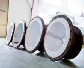 YKA型圓塊式石墨熱交換器以圓柱 體型單元積木式疊裝而成,結(jié)構(gòu)強(qiáng)度高,石墨件間墊以四氟質(zhì)或特種橡膠質(zhì)等質(zhì) 地密封件.密封可靠,設(shè)備導(dǎo)熱效率高,耐溫、抗沖擊、耐壓等性能優(yōu)越。本型設(shè)備分成I型與II型,I型載熱體切向進(jìn)入換熱塊,相鄰兩塊方向錯(cuò)開,縱向物料經(jīng)短 通逐塊再分配而紊流效應(yīng)顯著,下封頭附 加氣液分離的則成冷凝器,若上封頭改成 蒸發(fā)室則形成蒸發(fā)器。YKA-II型載熱體徑 向進(jìn)入換熱塊,殼體按外折